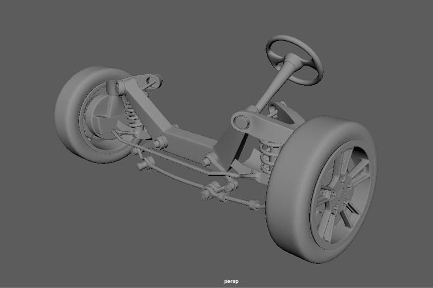 *Go-kart chassis model**: Includes steering wheel, wheels, and suspension, indicating advanced engineering design